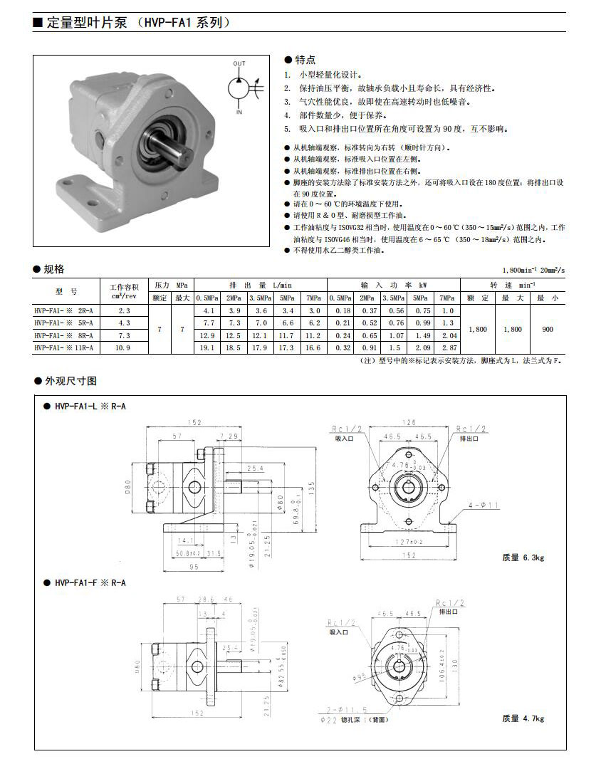 HVP-FA1系列定量叶片泵